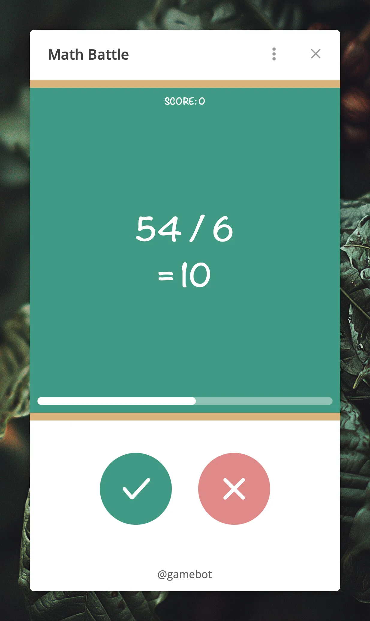 GameBot is a demo bot for the Telegram Gaming Platform. Play sample mini-games like Math Battle, Corsairs, and LumberJack right in Telegram.